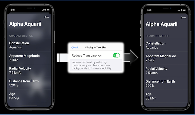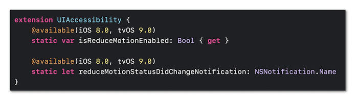 The first one is the Reduce Motion option whose intensity may be controlled in code writing.
