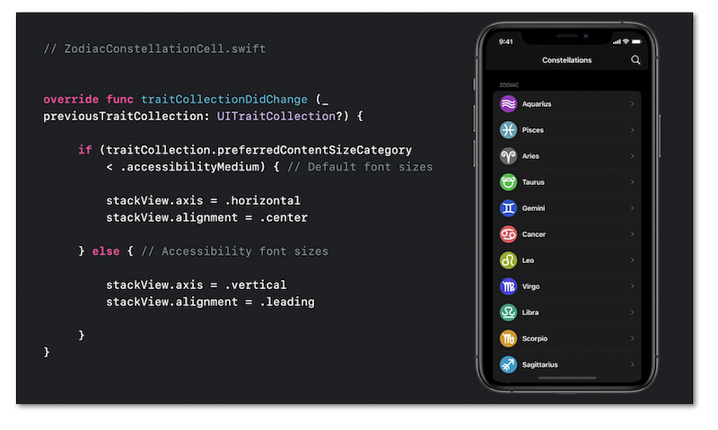 This video available on the official Apple website (session 10020) talks about some of the great ways that your app can provide for a visual experience that is inclusive to everyone.
