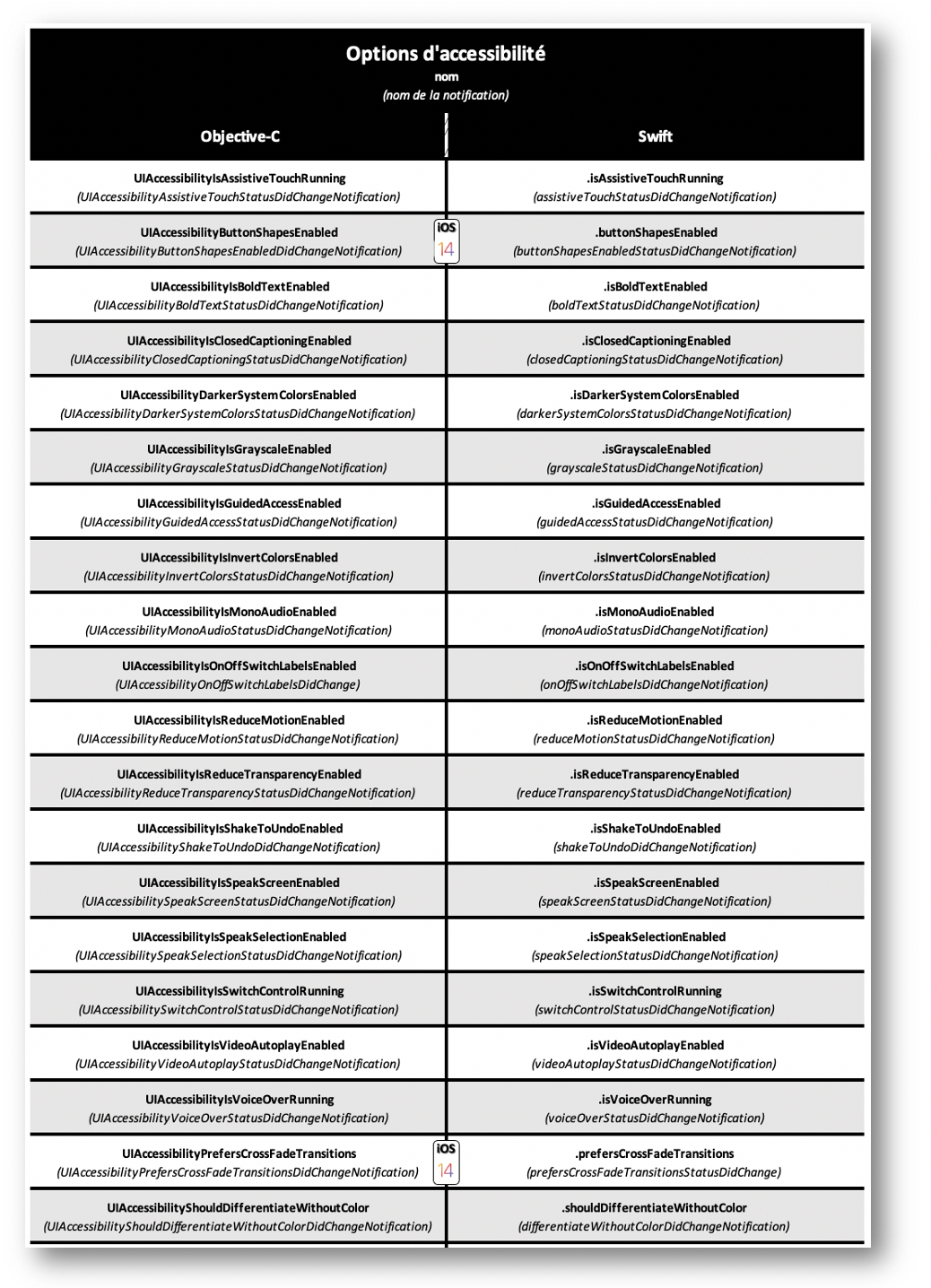 accessibilityTraitHeader : permet de définir un élément comme un en-tête (voir la section « titre et en-tête »),