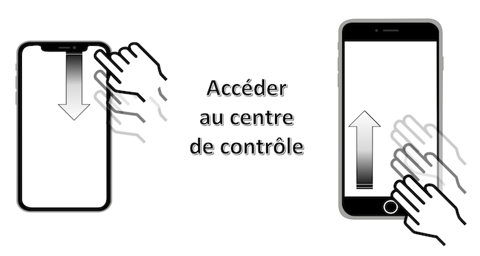 Mouvement : balayage vers le bas à partir du coin à droite en haut de l'écran avec 1 doigt.