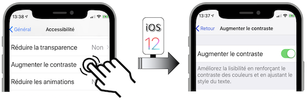 Ici encore, les réglages du terminal permettent d'activer cette option d'accessibilité.