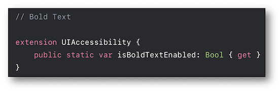 Côté développement, le suivi de la modification de ce réglage se fait grâce à la valeur de isBoldTextEnabled.
