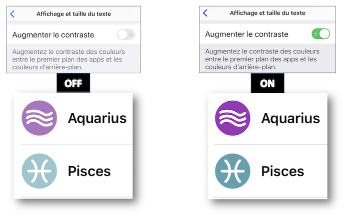 La préférence système Augmenter le contraste permet à l'utilisateur de demander une accentuation encore plus importante de l'intensité du contraste.
