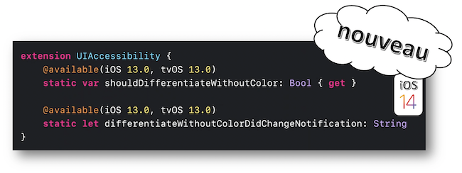 Introduite avec iOS 13, l'option Différencier sans couleur a droit elle aussi à être accessible via le code en iOS 14.